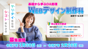 令和7年3月開講「基礎から学ぶOA処理 WEBデザイン制作科」募集の案内